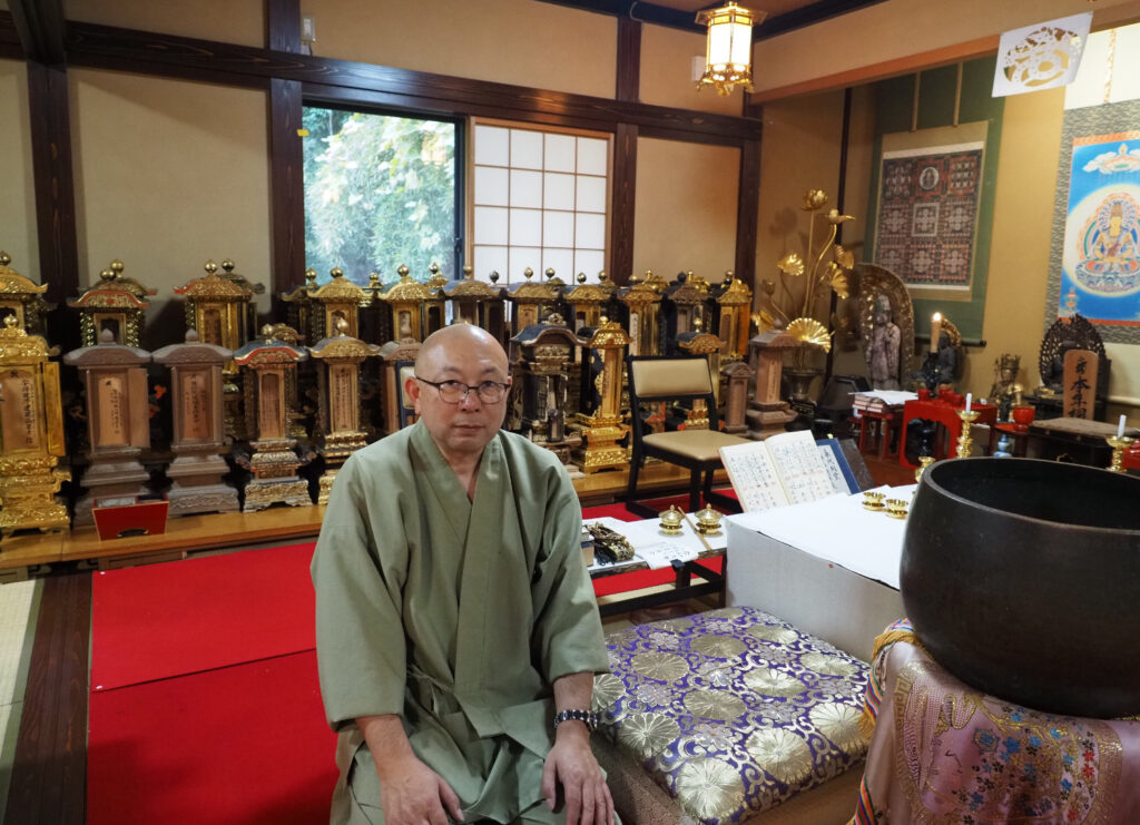 無事だった庫裏の2階を仮本堂にした。床の間に本尊や掛け軸をおき、バラバラになった位牌を本堂からはこんでくみたてて壁際にならべた。2007年の地震後に耐震構造でたてた庫裏があったから寺を再開できた。