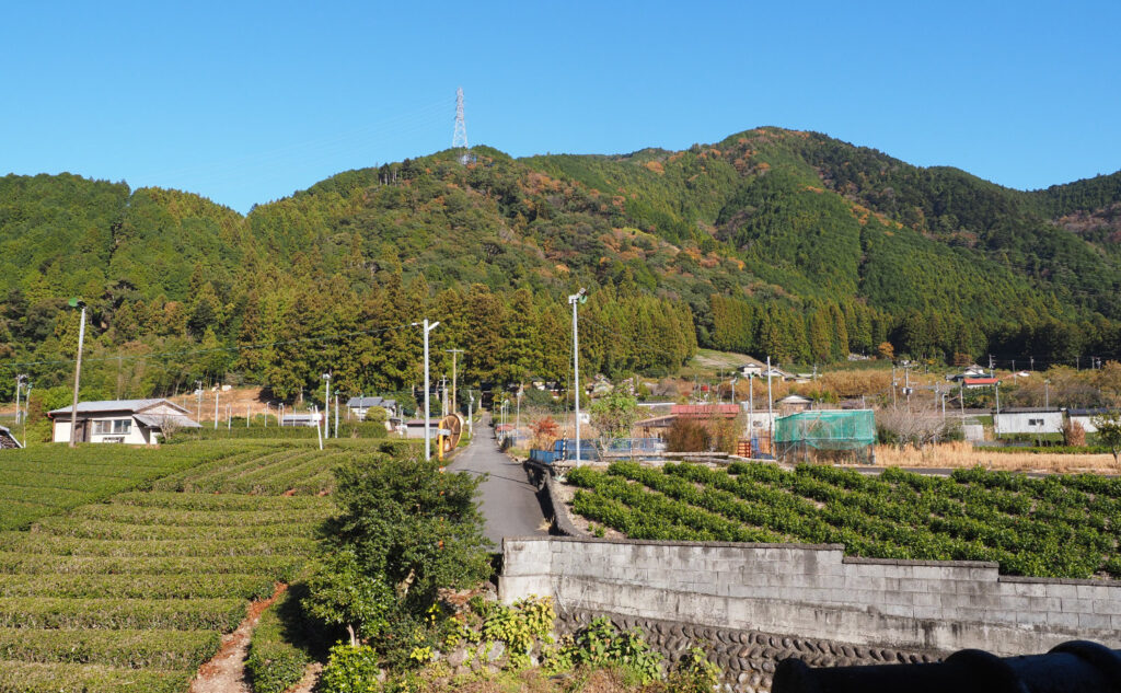 西側に山がつらなり日射量が少ないのも、やわらかい茶をつくるのに好都合だ。