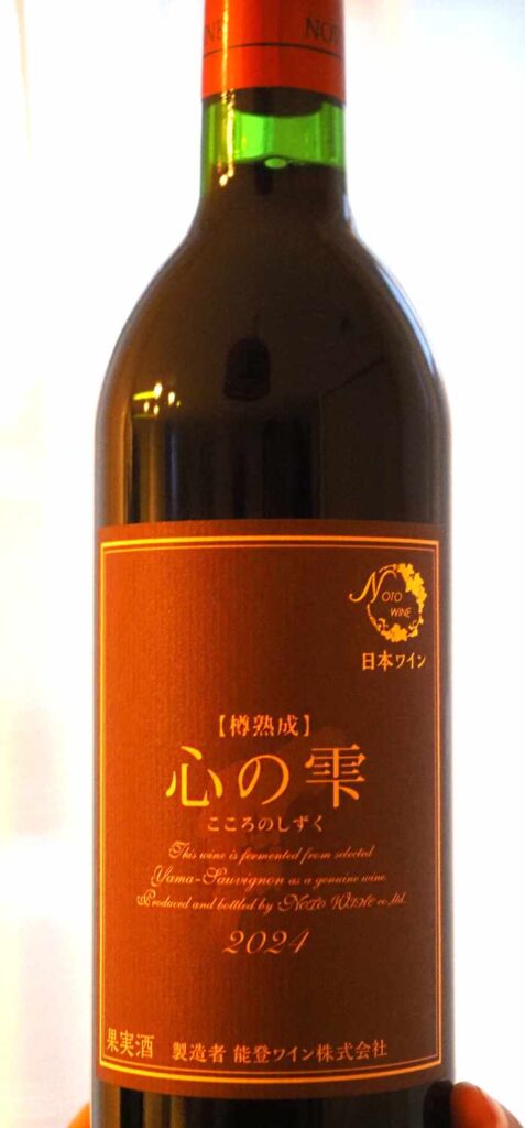 25年11月、輪島で会った友人に「能登ワインはそのへんの国産ワインとはちがう。以前にくらべても圧倒的においしくなってるよ」といわれ、15日に解禁したばかりの「能登ワインヌーボー」(約2000円)と、樽で6カ月熟成させた高級ワイン「心の雫」(約3500円)を道の駅で購入した。