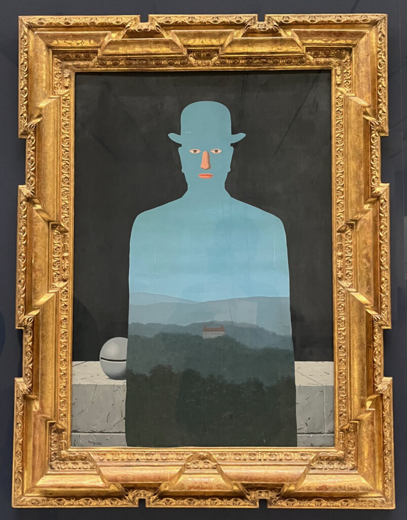 山高帽の男のなかに風景が。背景と反転している。