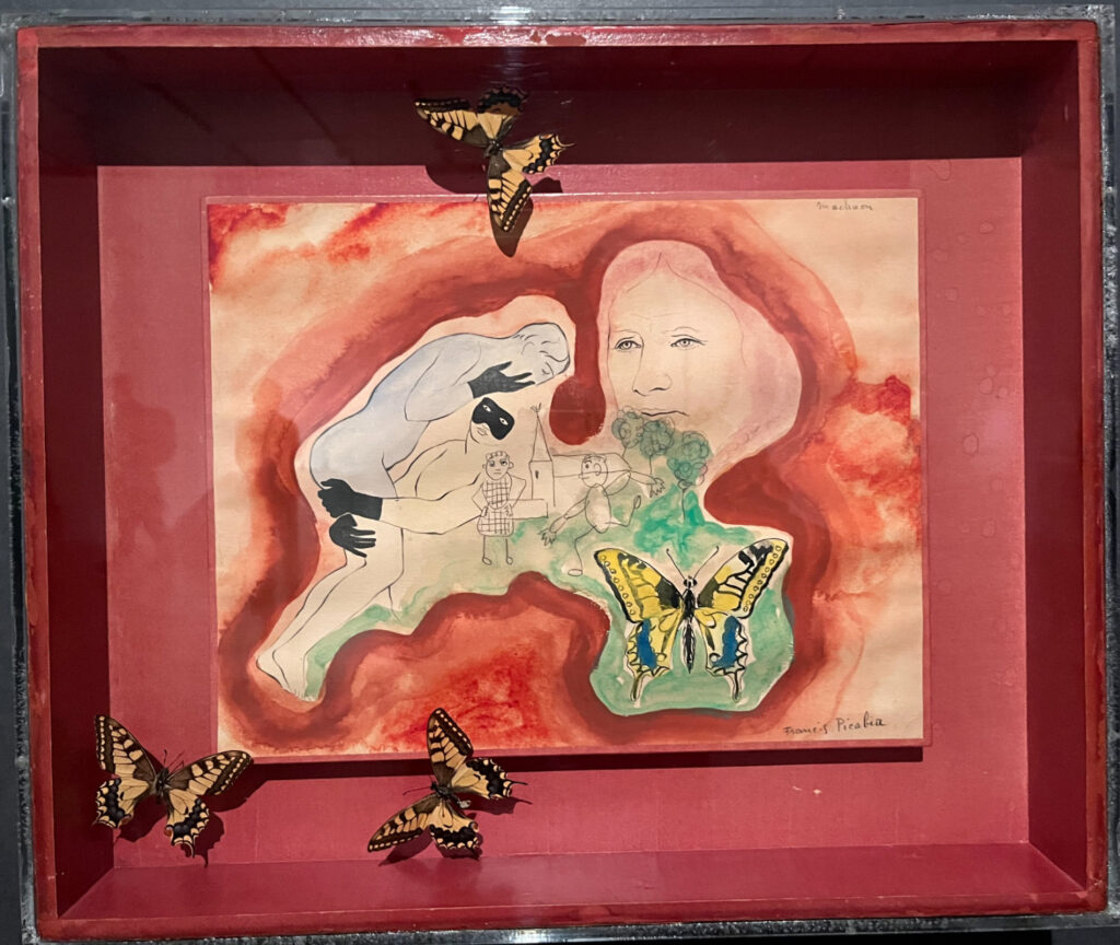 「黄あげは」は、アゲハチョウの本物の標本といっしょにだまし絵のように絵画のアゲハをくみあわせている