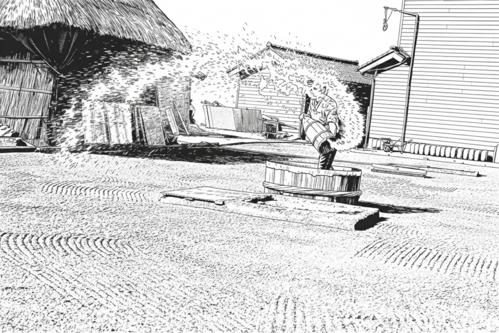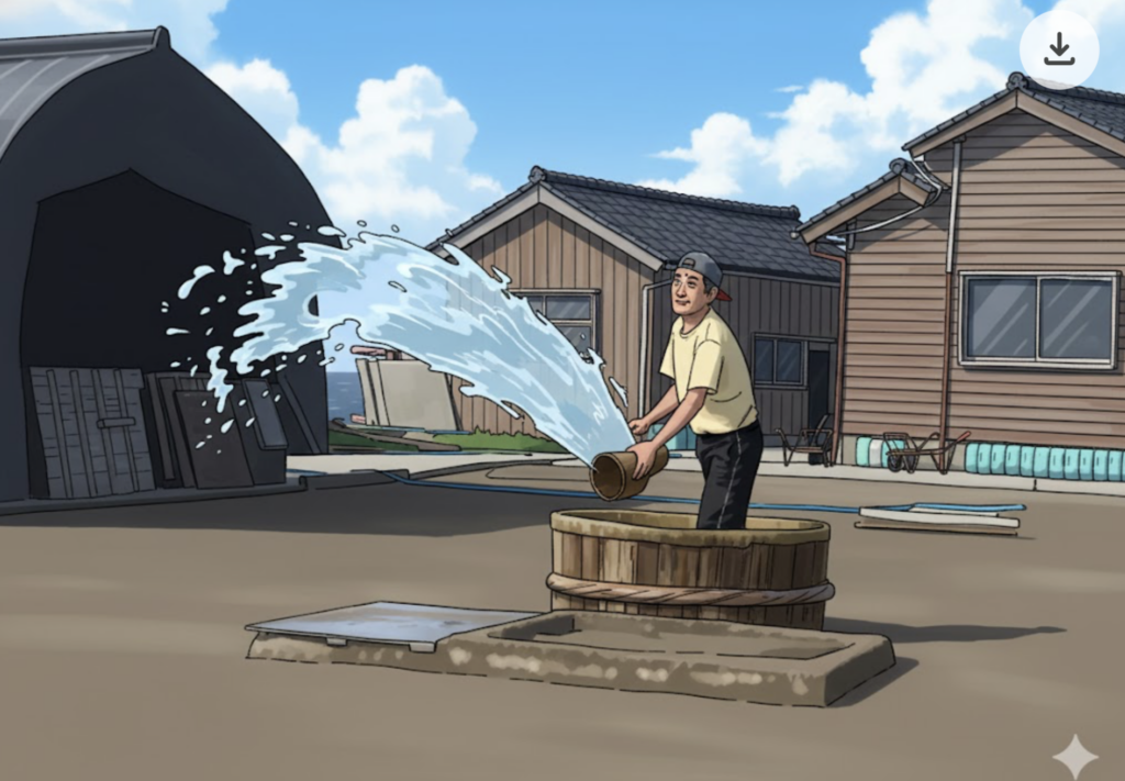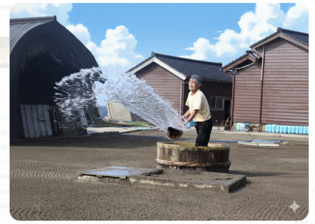 今回は角花豊さんの塩づくりの写真をAIでイラストにしてみます。