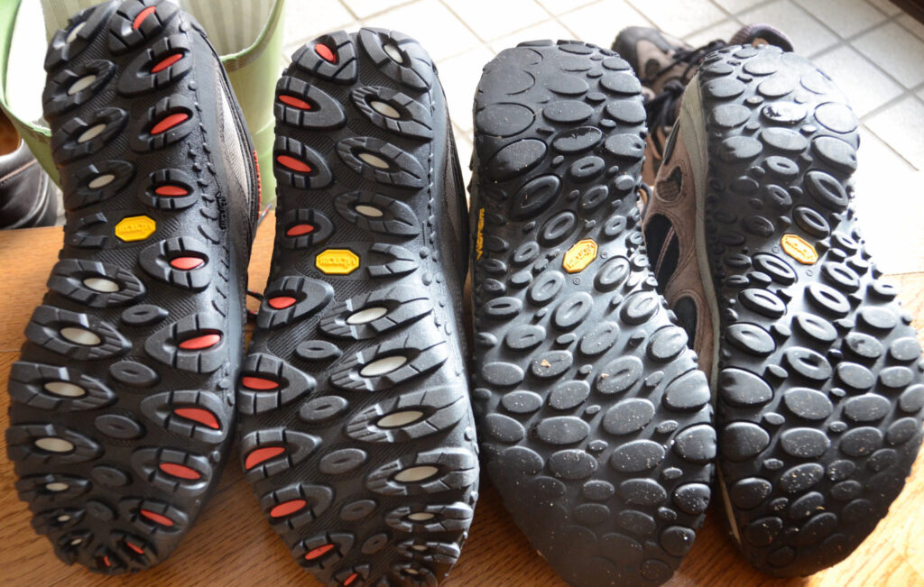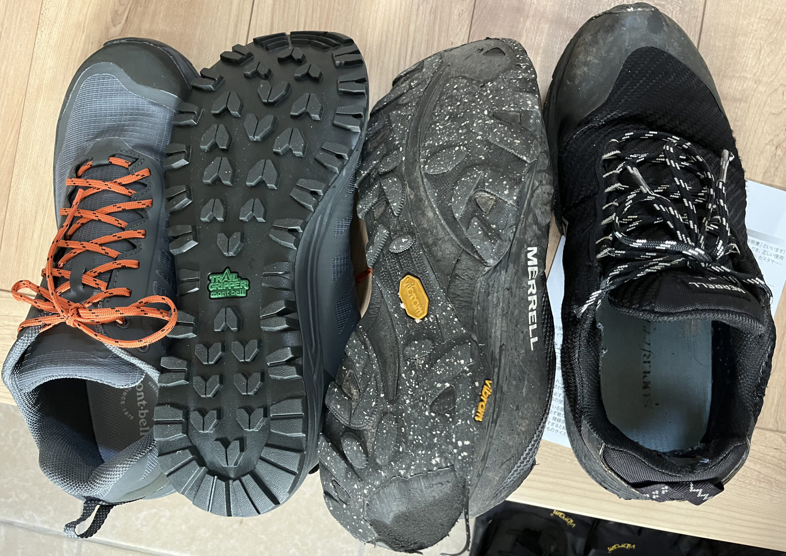 20年ほど前にモンベルの登山靴をつかったときは、歩きにくくてすぐに手放した。でもここ数年「モンベルのトレイルグリッパー(靴底)は湿った岩でもすべらないよ」という評判を耳にしたから、試すことに。