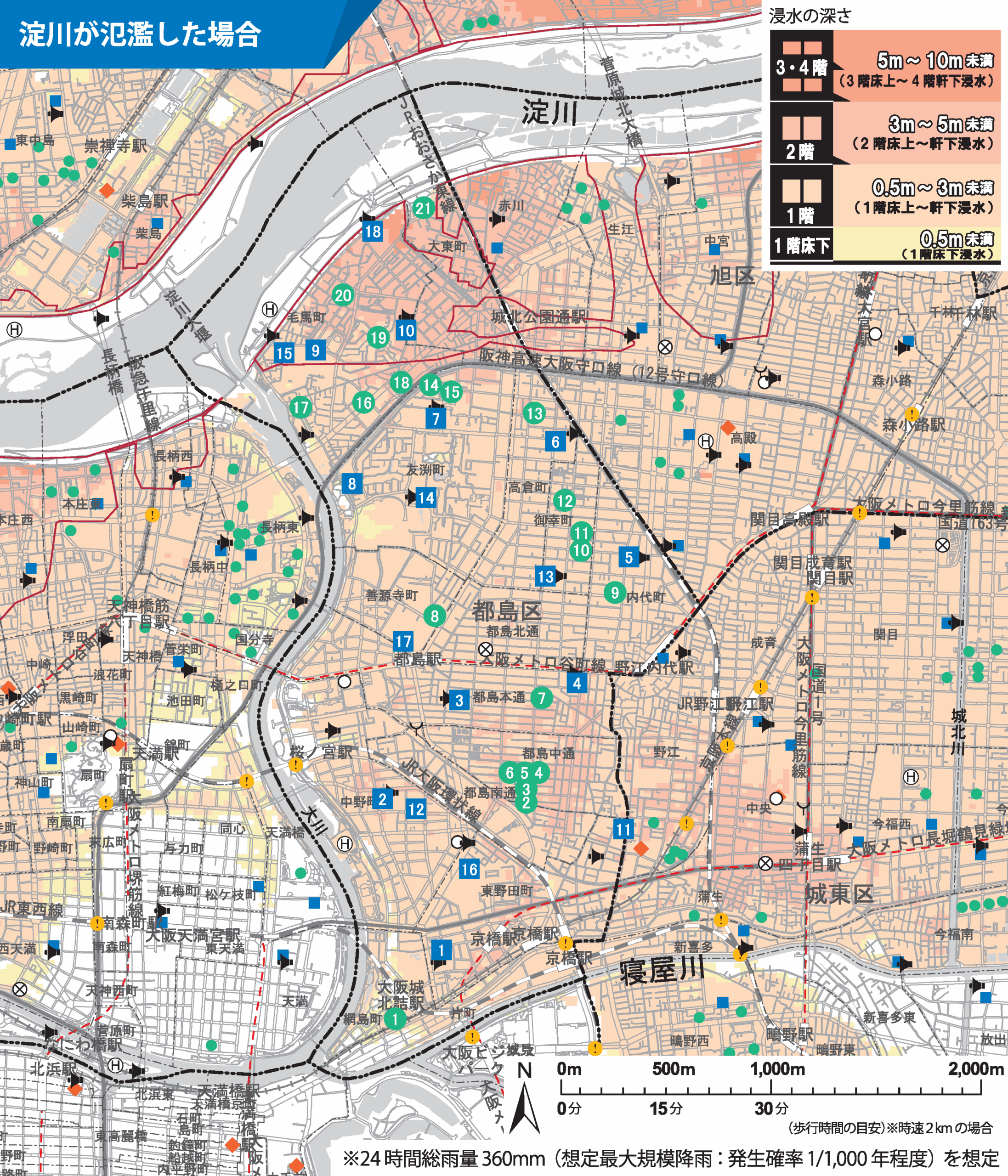 ちなみにこれはうちの近所のハザードマップ。浸水は1、2階までだからマンションの3階以上は大丈夫、というのは甘い。電源が切れ、トイレも使えなくなり……ということを想定しないといけない。