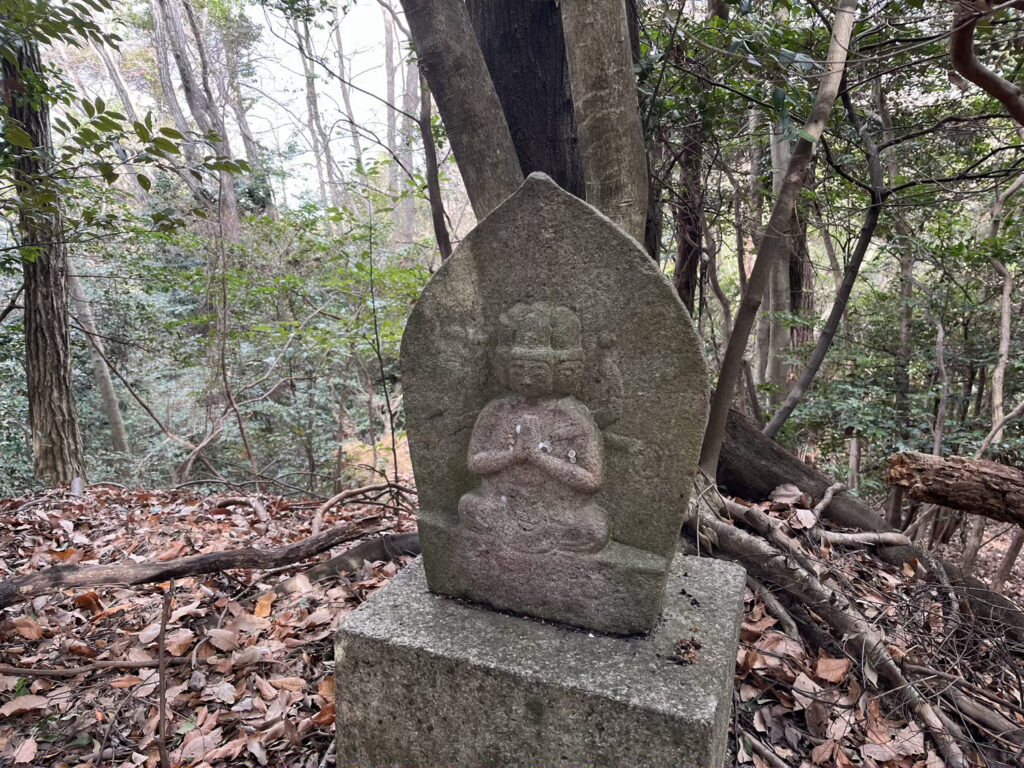 天田神社から山腹の団地をのぼりつめ、急坂をさらにのぼった尾根に石組みの立派な土台がある。獅子窟寺の仁王門跡だ。