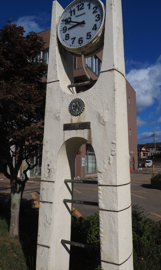 ボランティアにきた若者には、地震や豪雨の様子や被災状況について写真をみせながら話し、朝市通りや豪雨の場所、昭和30年代の水害の水位をしめす「水害水位表示塔」などを案内する。