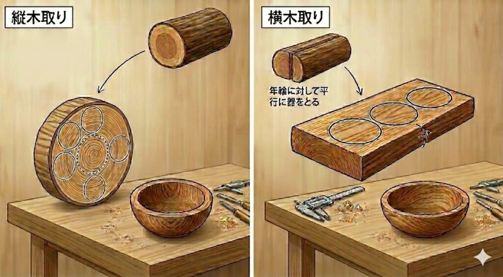 木地は丸太を縦にわって「横木取り」をする。横木取りは縄文以来の技術だったのか。輪島塗の木地のもとになる荒型(アラカタ)の産地だった輪島市・大沢地区の話を思いだした。