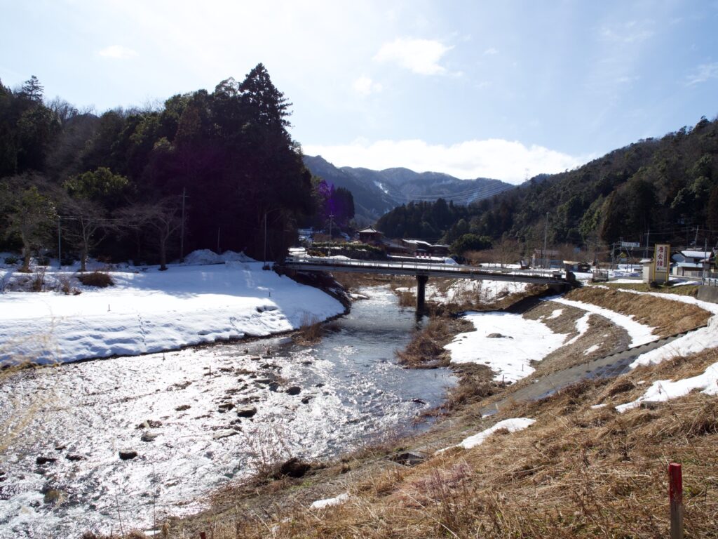 2026年2月、日本海側の小浜の町から南川をさかのぼった。ところどころ雪がのこる標高100メートルほどの地区の名は納田終(のたおい)。名田庄という荘園が終わるところという意味らしい。2020年には50軒104人だが、1968年は93戸365人をかぞえた。地区の下流側には「勘定橋」という橋があり、納田終にはいるには金を払わなければならなかったとつたえられている。祭では今も家の「格」の順番にすわるという。